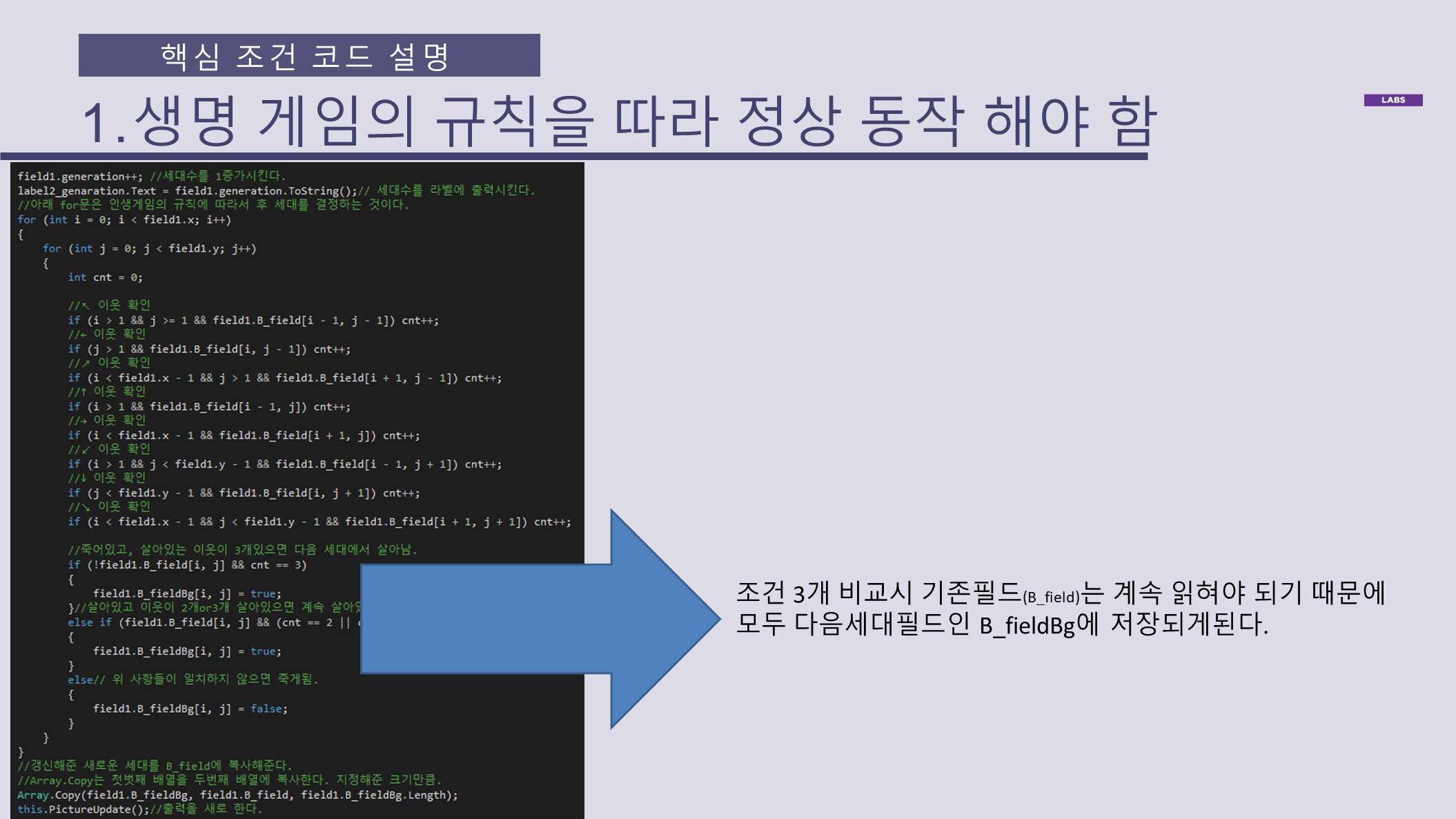 라이프게임의 규칙에 따라 정상 동작 (참고)