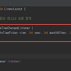 [Android] Listener with Interface (for TimePicker, Calendar) 이번 포스팅은 안드로이드에서 복합 위젯을 만들어 보는 예시 중에서 캘린더와, 시간선택 위젯 두 개를 합친 커스텀 위젯을 만들어보는 예시에 관련된 내용입니다. 해당 내용에서 DateTimePicker 클래스에서 OnDateTimeChangedListener 인터페이스를 정의하여 캘린더와 시간 선택에 있어서 같이 처리가 되도록 하는 내용이었는데 잘 이해가 되지 않아서 이해 될 때까지 해봤습니다. 그 내용을 기록하는 것이 글의 목적입니다. 현재 시간이나 날짜를 사용자가 변경하게 될 경우 호출되는 리스너를 정의합니다. 인자로는 뷰를 받고, 년, 월, 일, 시간, 분 을 전달 받습니다. 36라인에는 인터페..
