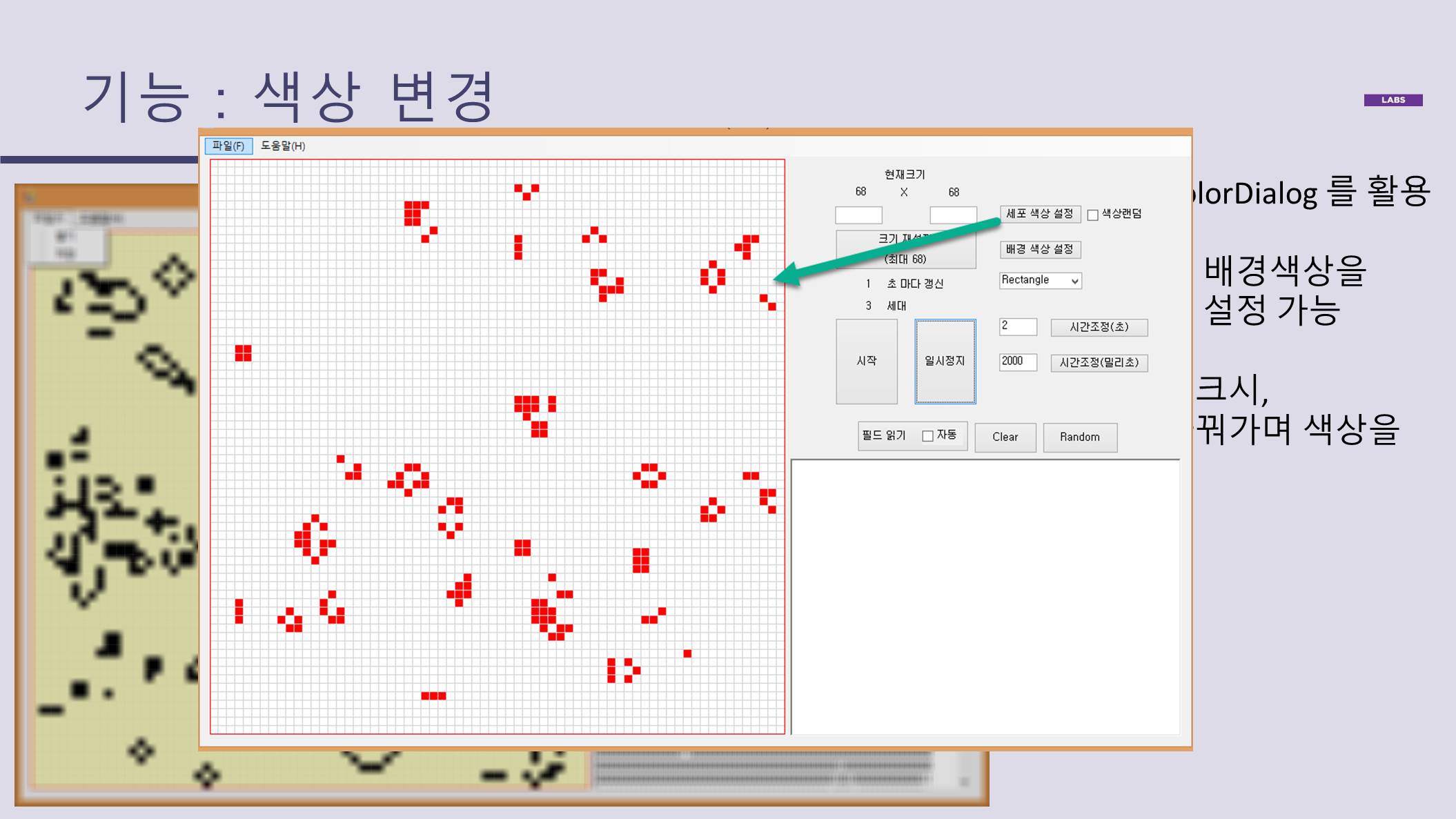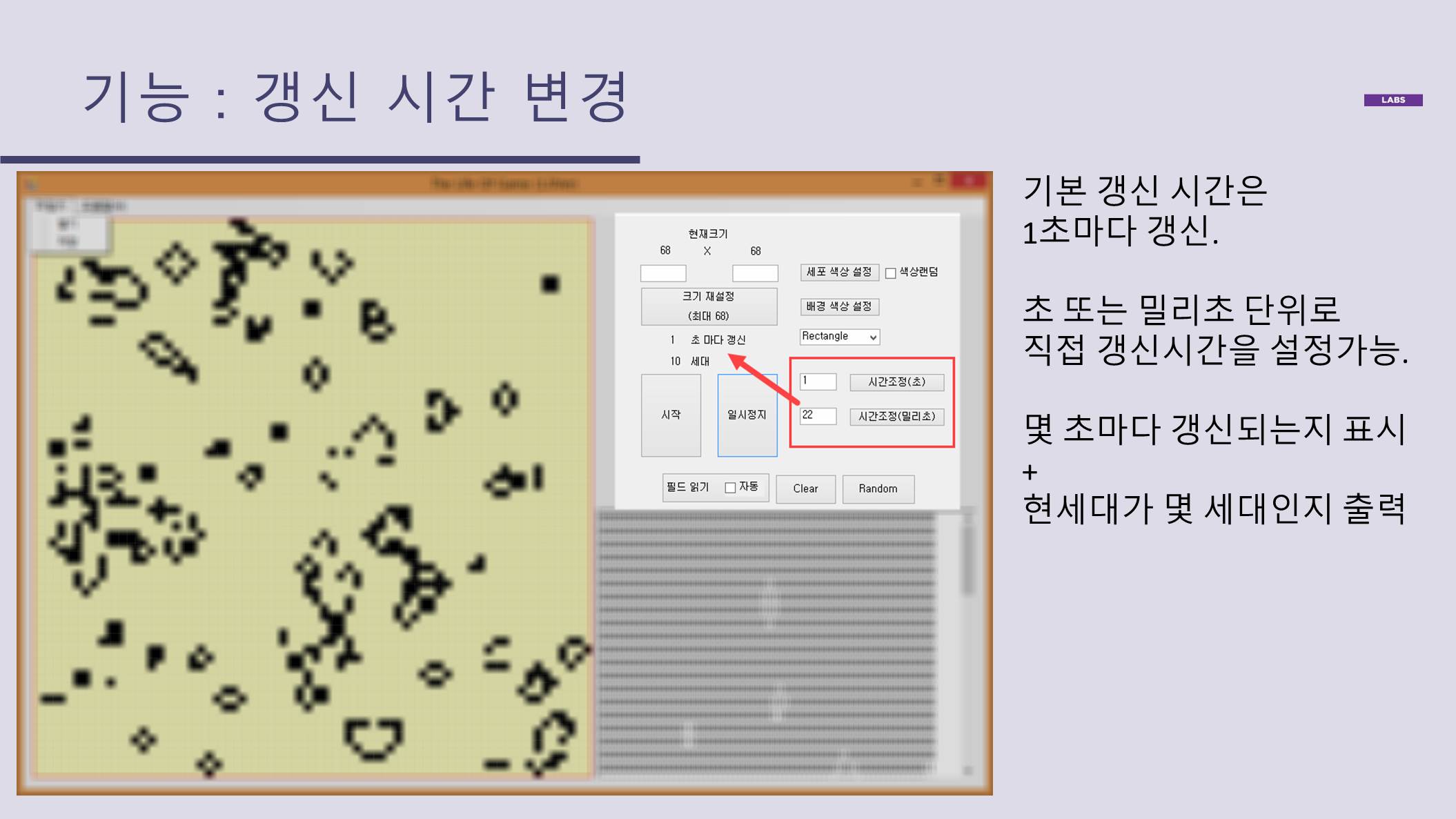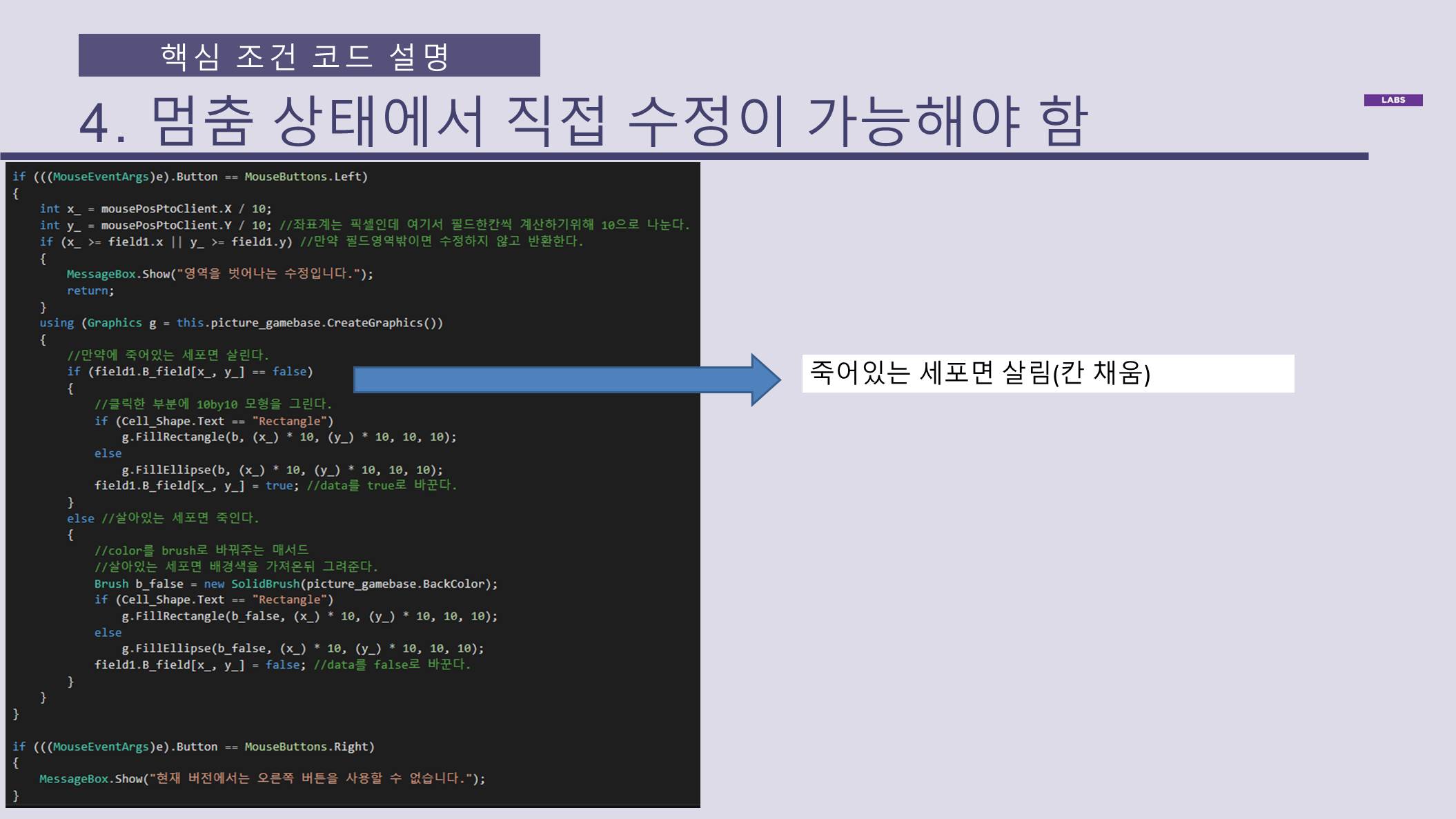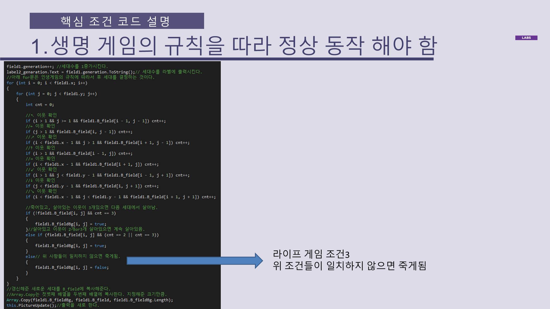 라이프게임의 규칙에 따라 정상 동작 (참고)