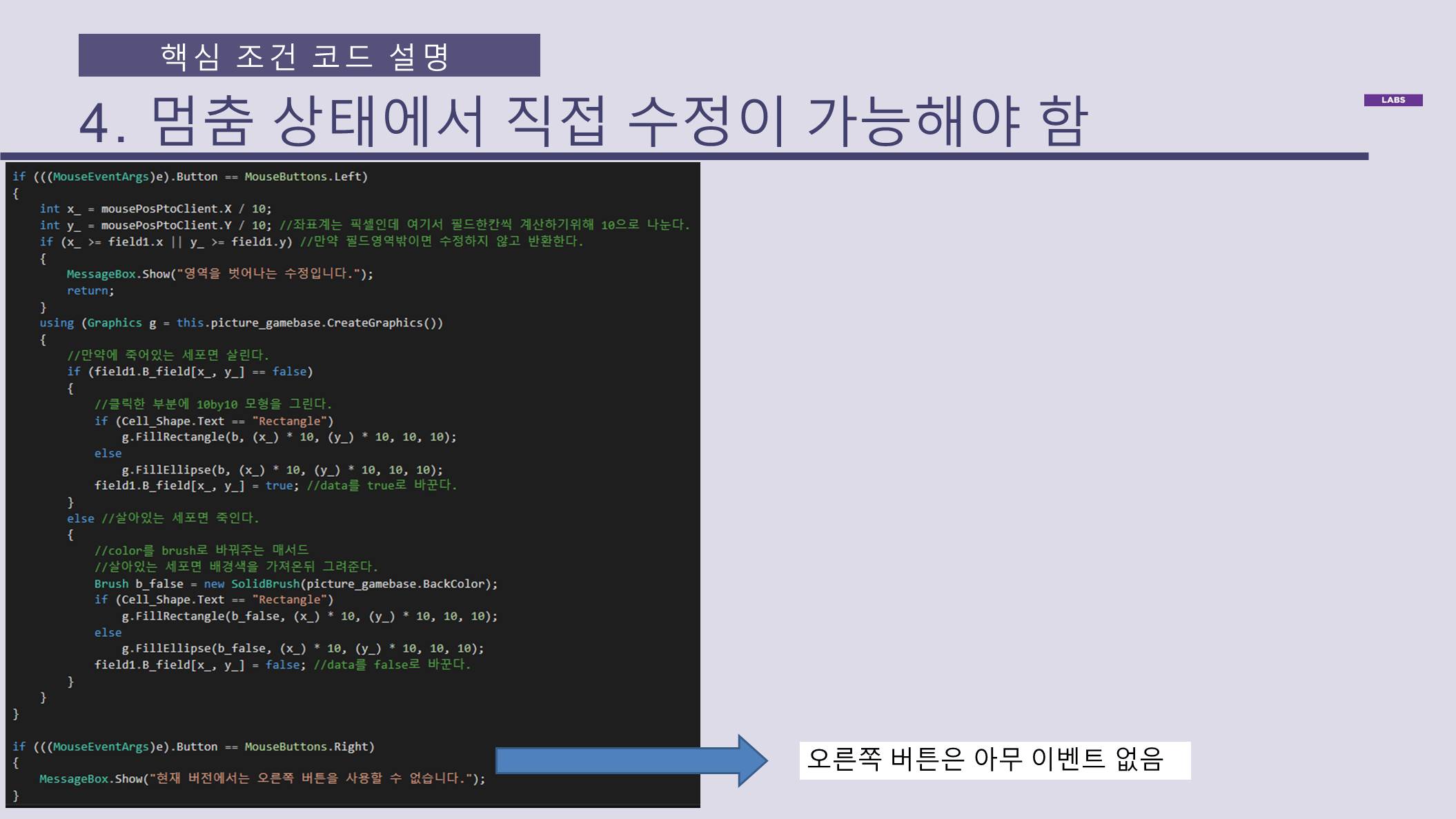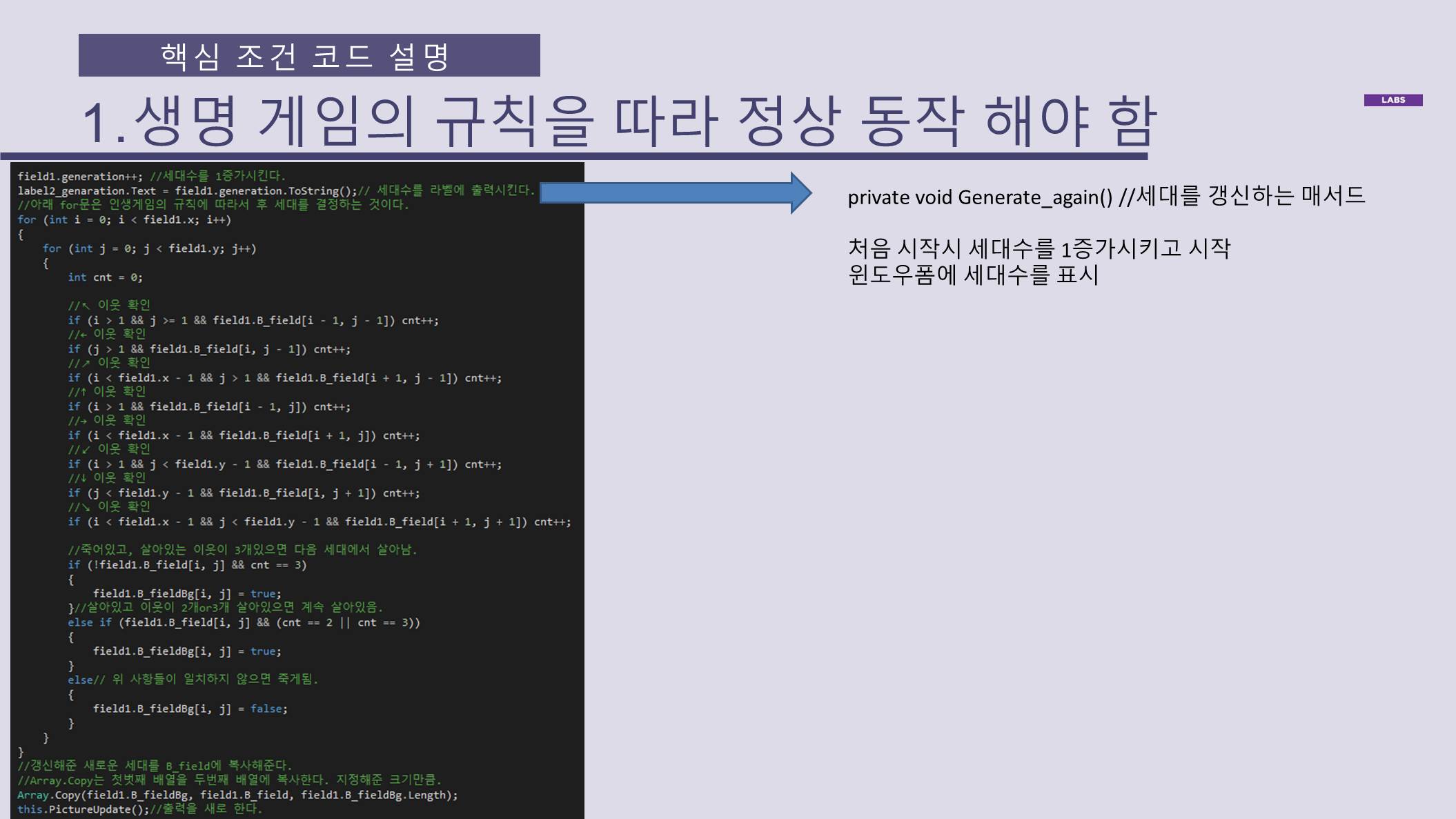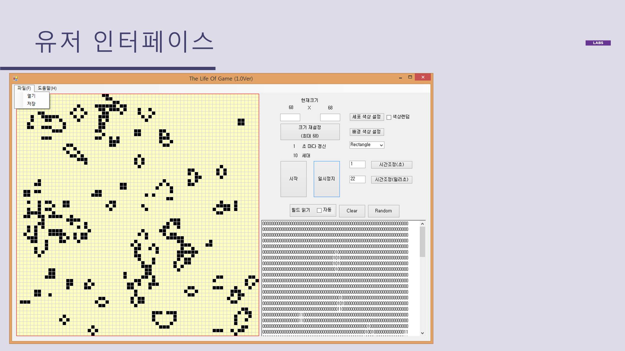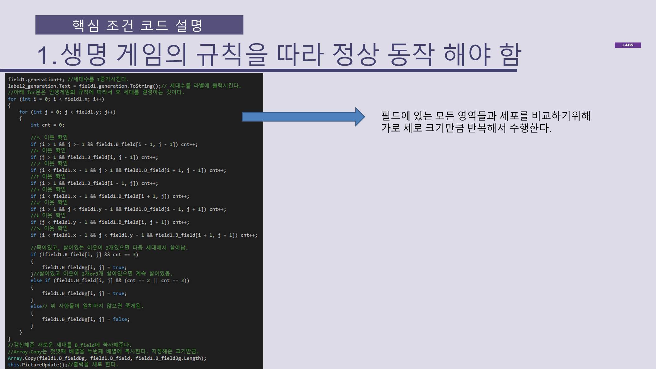 라이프게임의 규칙에 따라 정상 동작 (참고)