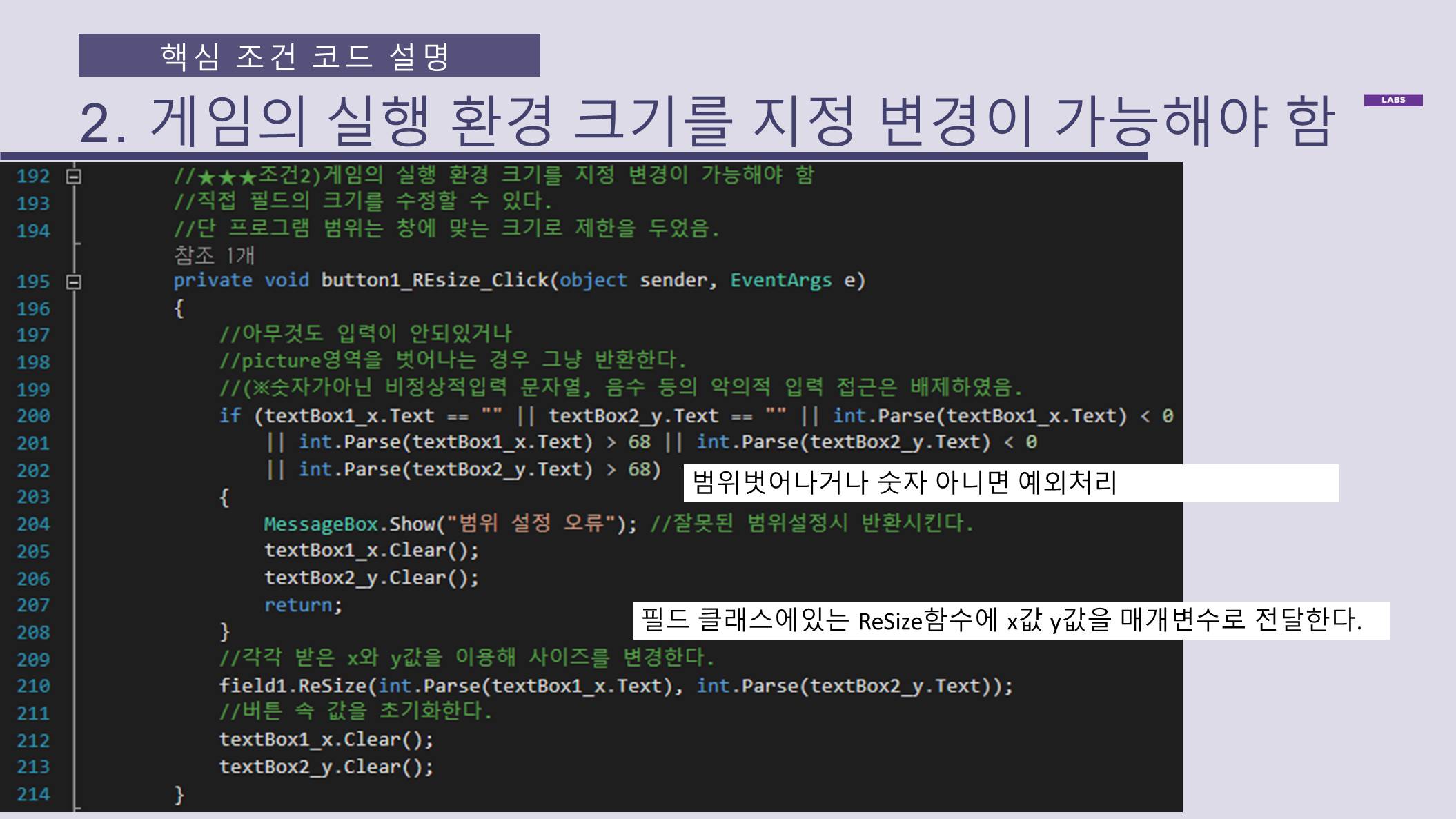 게임의 실행환경 크기 변경 가능