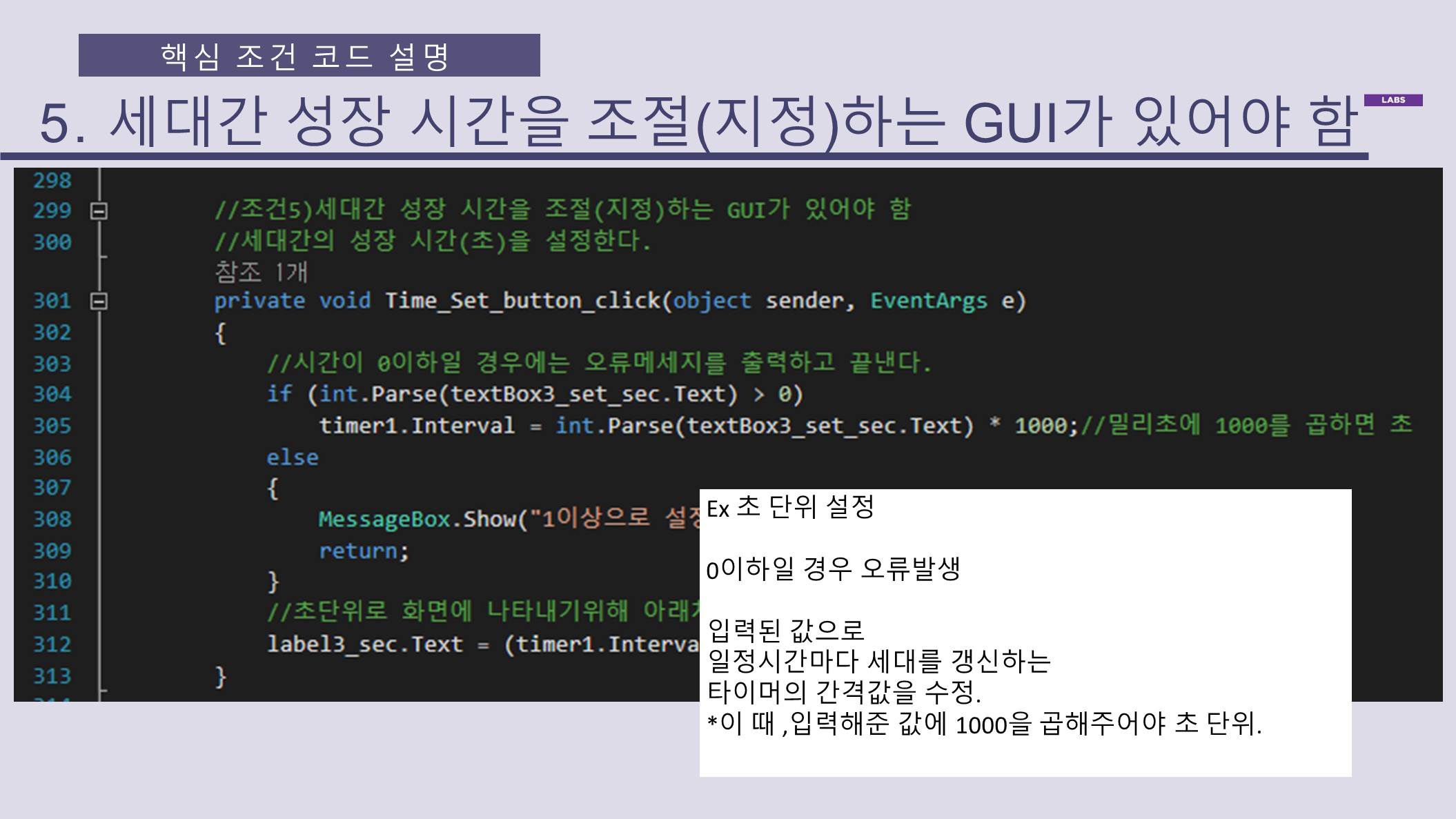 세대간 성장시간 설정 가능