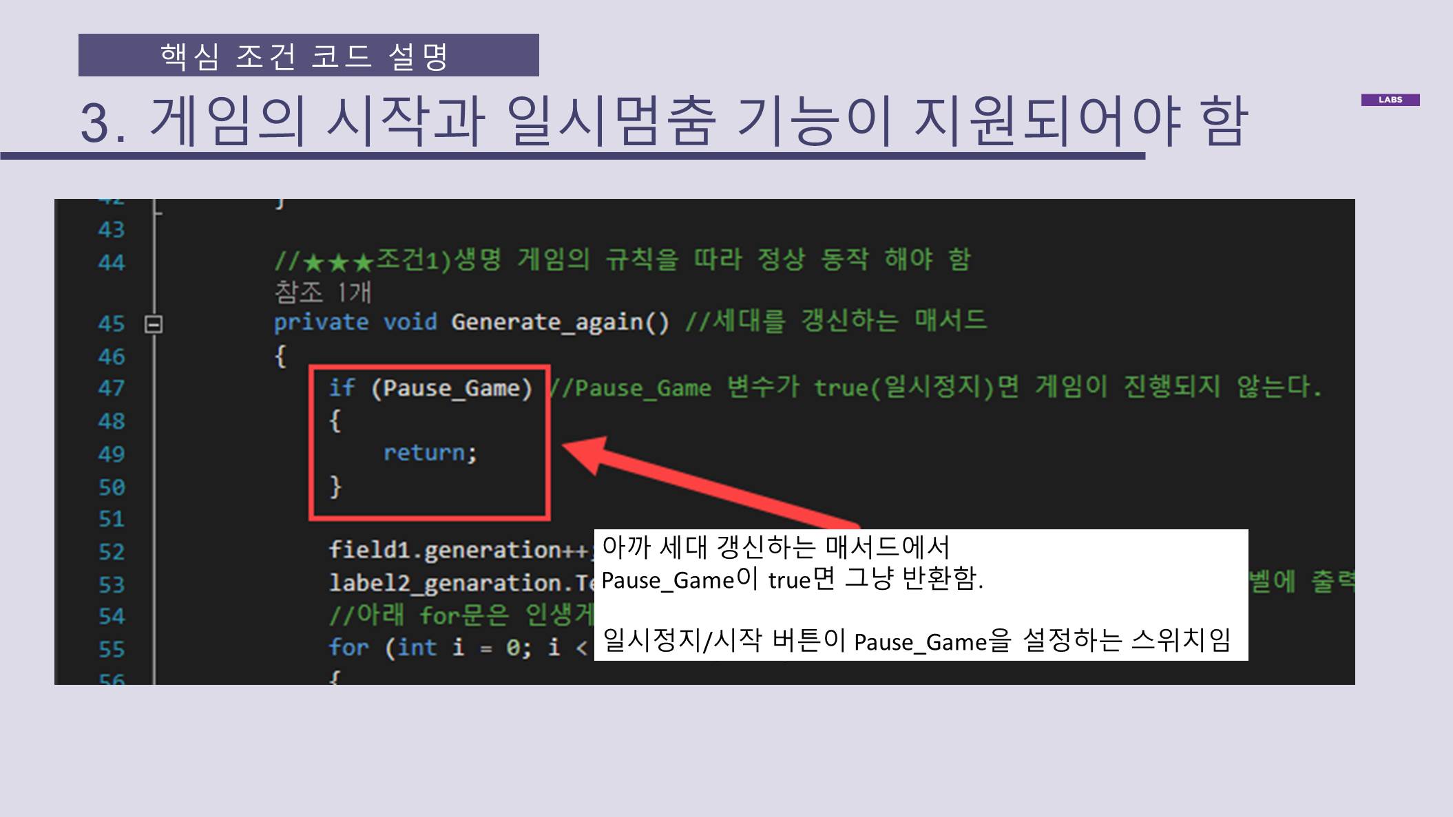 게임의 시작과 일시정지기능