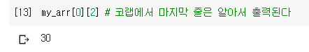 특정 인덱스에 접근하는 방법은 동일합니다. (인덱스는 0부터 시작)