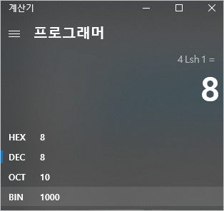 이에 shr은 shift RIGHT라는 것을 쉽게 유추할 수 있습니다. 즉 8 shr 1 은 0100, 즉 10진수 4가 되는 것입니다.