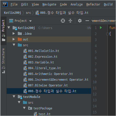 오늘은 코틀린에 있는 정수 타입(형식)과 실수 타입(형식)에 대해서 알아보도록 하겠습니다. 다른 언어와 비슷한 점도 있으나 다른 점 또한 존재하므로 한 번에 설명드리도록 하겠습니다. 그럼 바로 예제 코드를 보시죠. 🧊