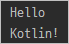 + 연산자를 사용하면 문자열 간에 이음을 할 수 있습니다. 때문에 Hello와 Kotlin! 문자열이 붙여집니다.