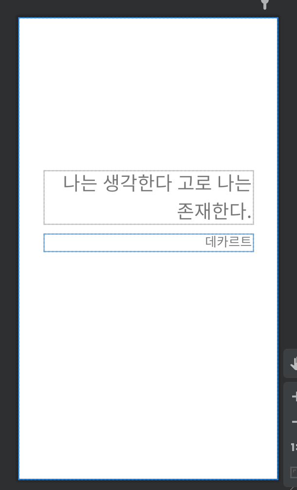 pager에 들어갈 각각 뷰를 정해주기 위해 아래와 같은 레이아웃을 추가로 구현해주었습니다. 간단하게 텍스트뷰 2개를 갖는 뷰 이며 명언과 작가를 표시하도록 하겠습니다.
