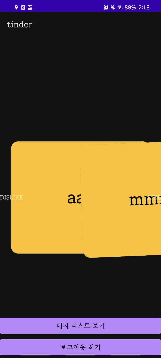 매칭앱을 구현하면서 쌓인 카드를 넘겨버리는 형식을 사용하려 했고 이를 검색해보니 우리가 원하던 기능을 제공하는 yuyakaido/CardStackView 라는 라이브러리를 발견하여 사용해보도록 했습니다.