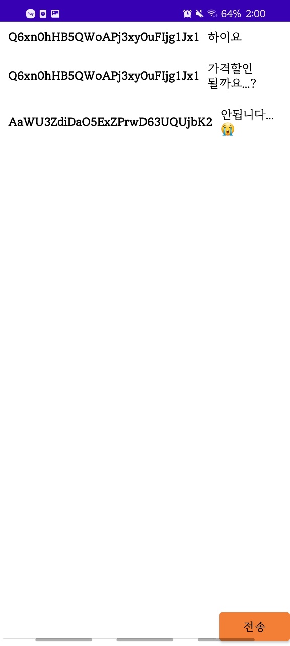 이후 채팅목록, 채팅방 등도 동일한 매커니즘으로 리사이클러뷰를 사용해서 구현해주면 앱을 완성시킬 수 있습니다. 전부 완성된 전체 코드와 전체 프로젝트의 경우 저의 깃허브 저장소를 통해 확인할 수 있습니다.