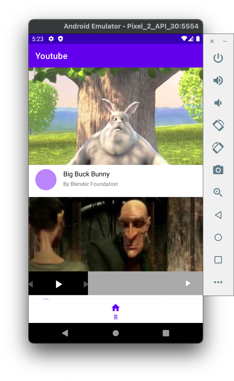 이후 메인에서 retrofit으로 받아온 dto 클래스의 비디오 목록을 해당 어뎁터의 리스트로 등록해서 사용하면 되겠습니다.