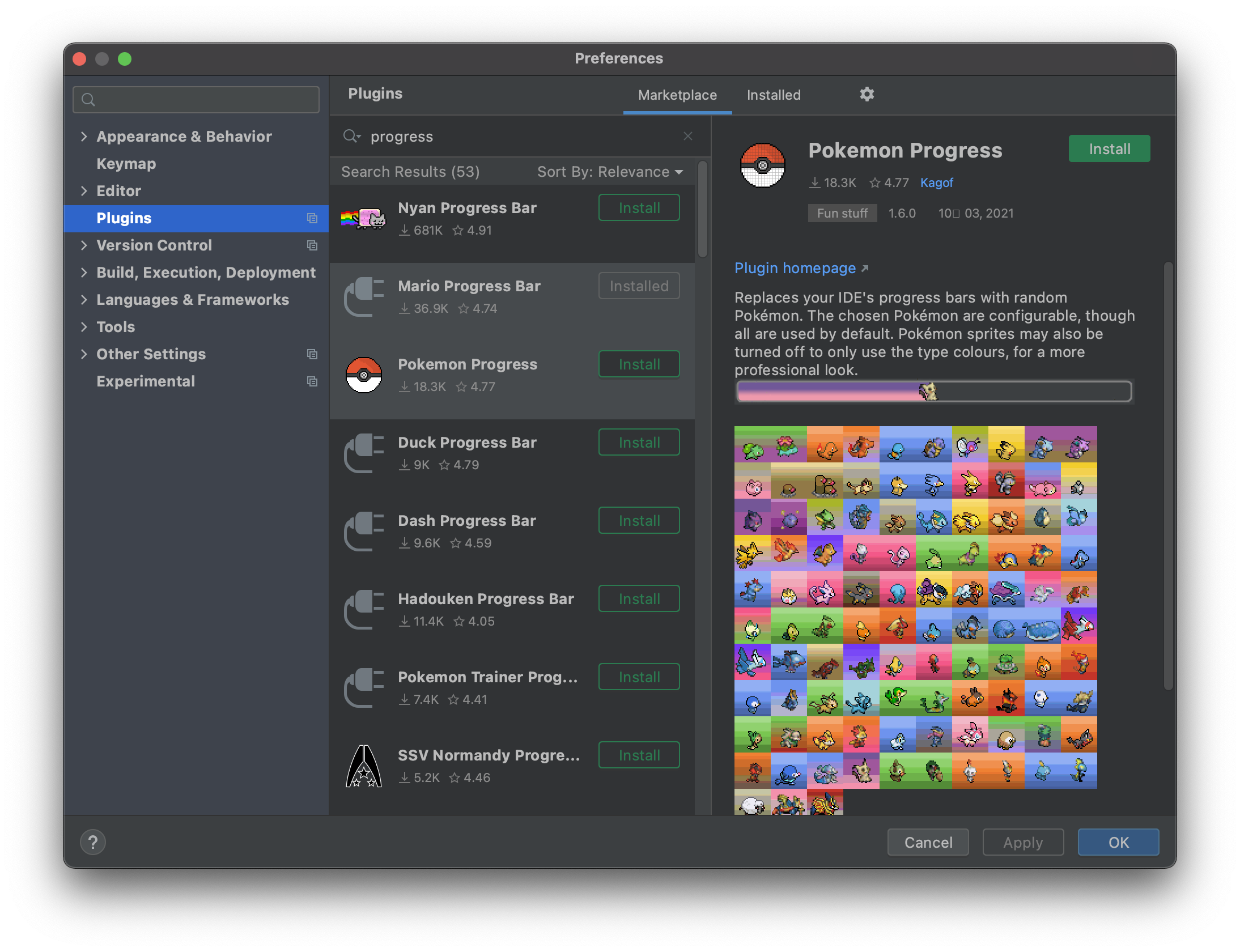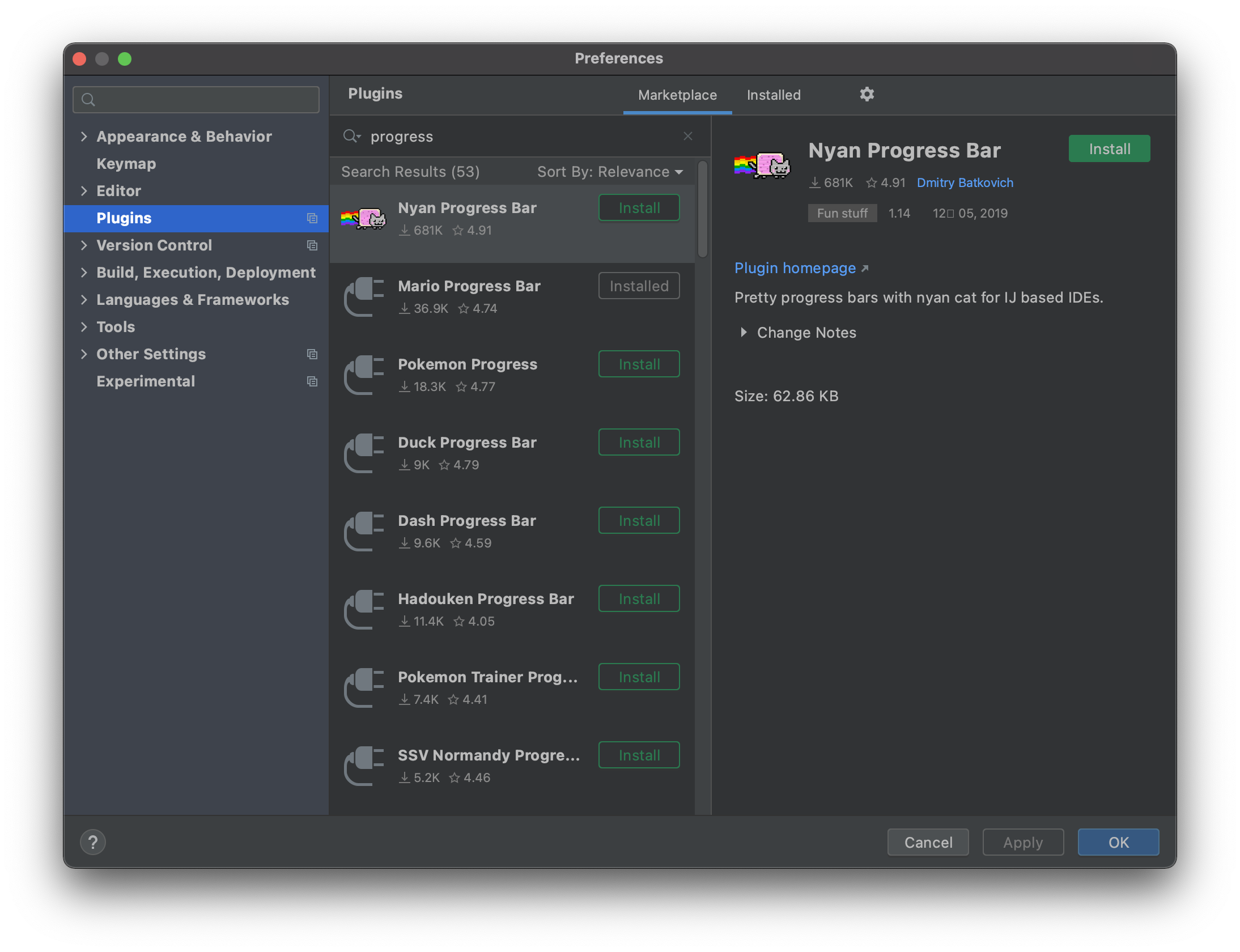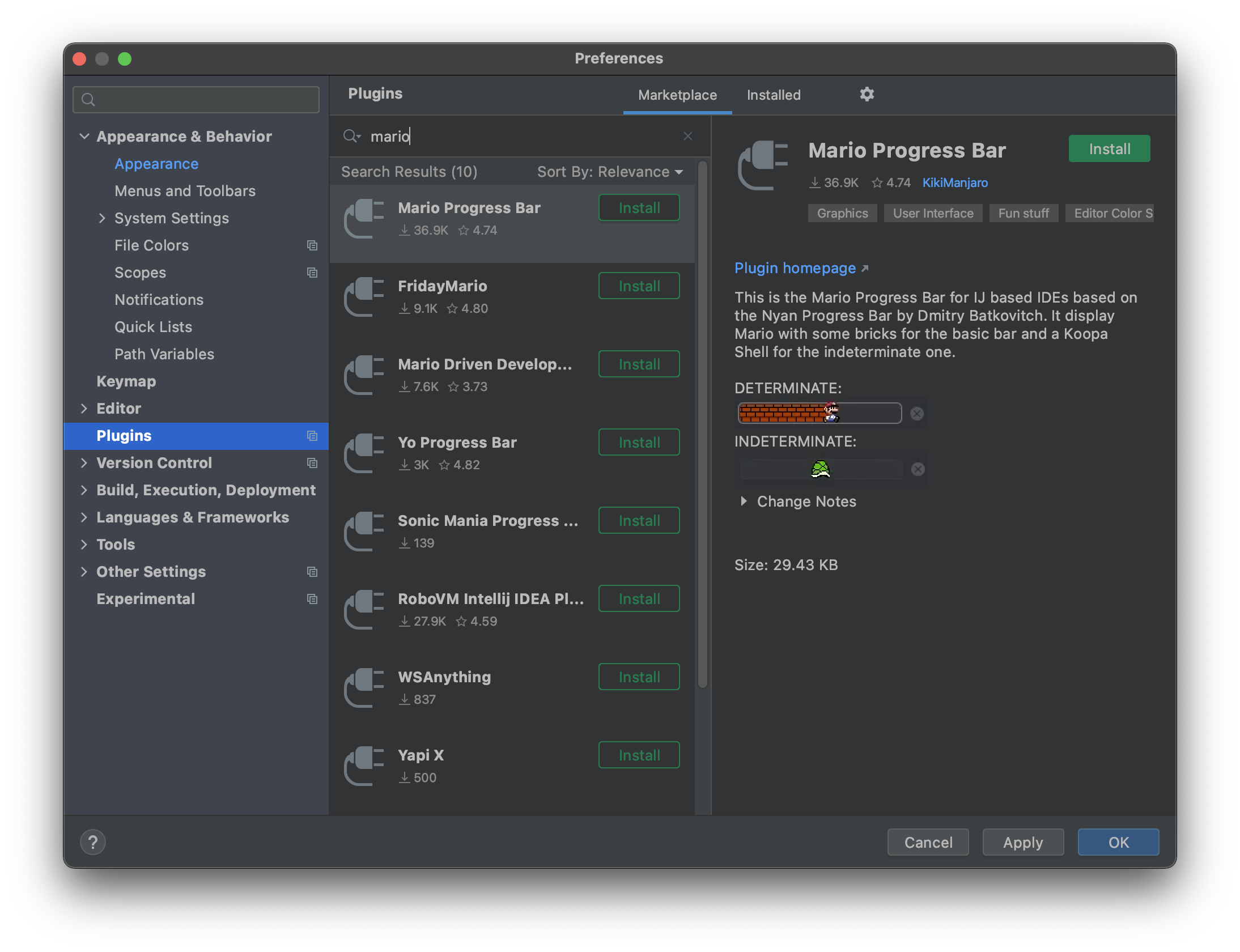 이후 현재(2021-10-14) 기준 36.9K 의 다운로드 수를 기록한 Mario Progress Bar 를 Install 해줍니다.