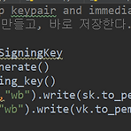 python ECDSA library Examples of use 이전 글에서 보았던 파이썬 ECDSA라이브러리 사용 예시를 보도록하겠습니다. 본 게시글은 ECDSA라이브러리의 사용방법을 설명하며, ECDSA에 대한 이론적인 내용은 따로 공부하시기바랍니다. step1: 5,6라인에서 키 쌍을 생성합니다. 그리고 7,8라인의 파일입출력을 통해서 확장자 .pem파일로 저장을 해줍니다. step2: 5번라인에서 사인키를 open해줍니다. (step1 에서 저장해주었던 파일이죠.) 그 후에 message를 열어서 사인키로 서명을 진행합니다.(6~7라인) 이 때 message파일은 없어서 제가 text로 작성해준뒤 따로 먼저 만들어 주었습니다. 8라인에서 signature파일에 서명을 저장합니다. step3: 5..
